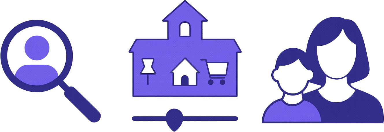 Ob Baugrundstücke, Kinderbetreuung, Einkaufsmöglichkeiten oder Freizeit: Filtere gezielt nach dem, was du und deine Familie wirklich brauchen.